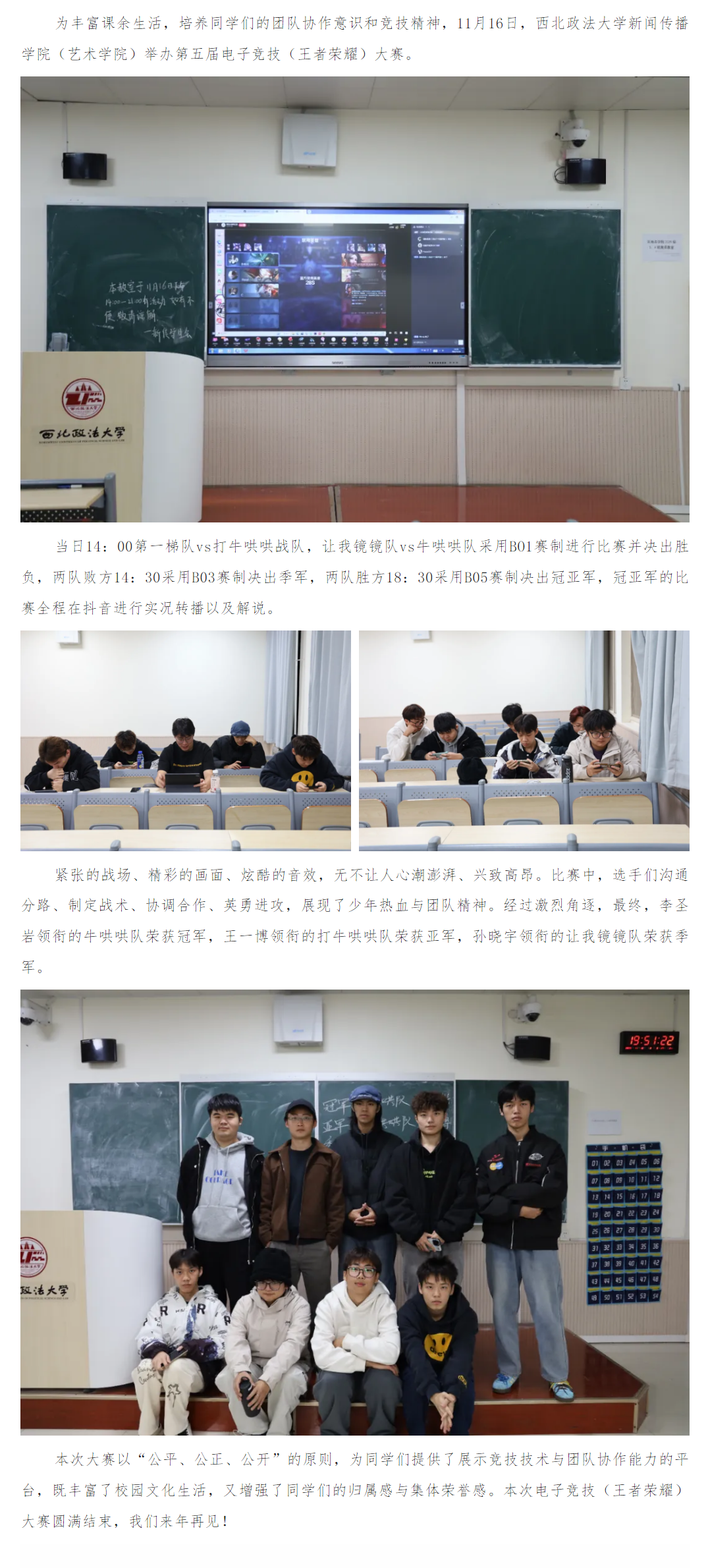 开元体育 第五届电子竞技(王者荣耀)大赛圆满结束