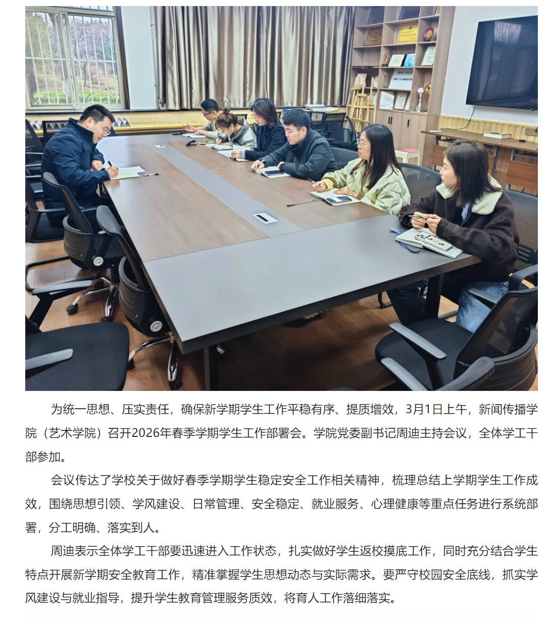开元体育 召开2026年春季学期学生工作部署会