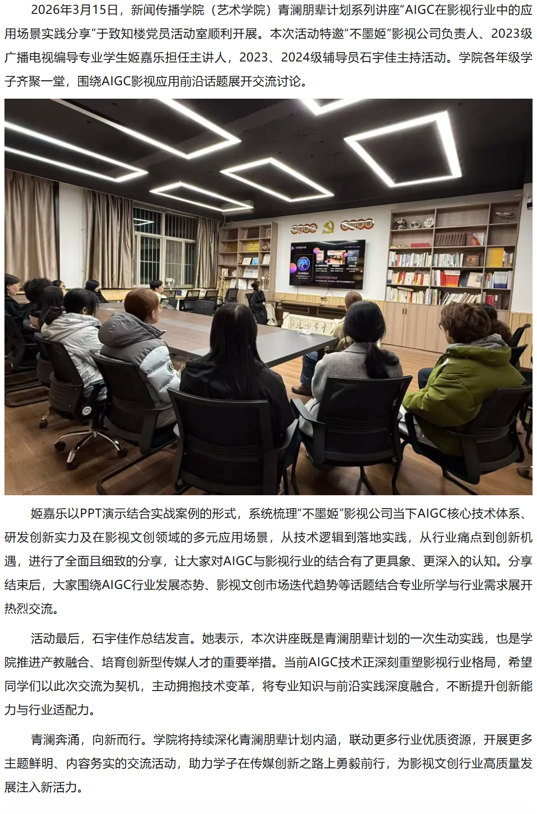 青澜朋辈计划|跨界碰撞!开元体育 学子共探AIGC影视应用新图景