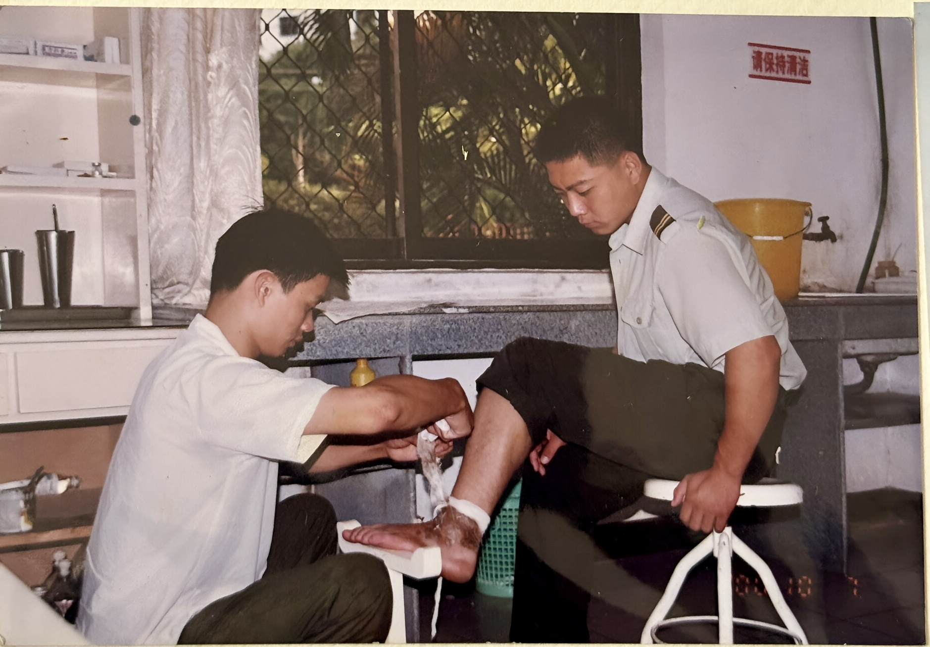 恰逢部队招考的消息传来,陈志金果断抓住这束“机遇之光”,毅然报名。谁也未曾想,这一抉择竟彻底改写了他的人生轨迹。1997年12月,他正式服役于厦门警备区机关门诊部,入伍时一米八的他体重仅110斤,瘦弱的身形下,是远超同龄人的沉稳与过硬的医术功底。新兵连里,无论谁受伤不适,他总能第一时间主动上前诊治,娴熟的专业能力很快吸引了领导的目光。“你是块当医生的料,该去医院真正发挥价值。”在中队长的赏识与推荐下,他顺利进入部队医院深造,而这段经历,也悄然为他与恩师吴子寿的不解之缘埋下了伏笔。