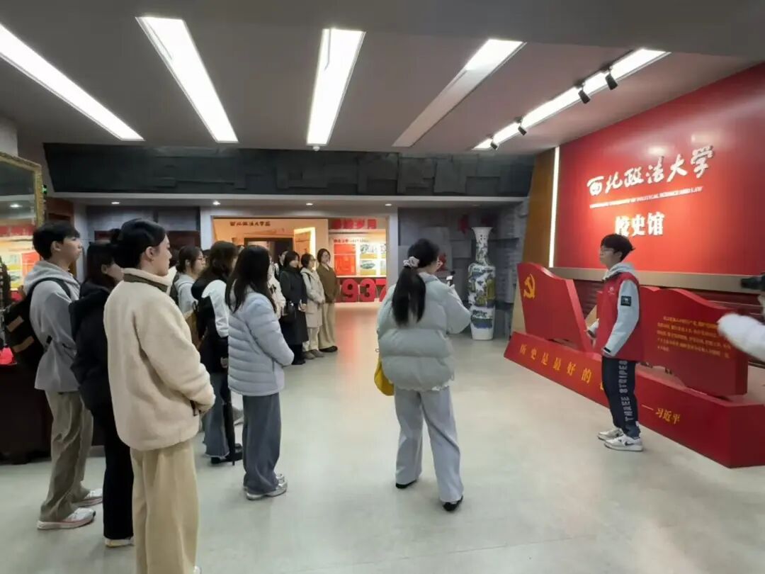 在讲解员的带领下,同学们依次走进历史厅与现代厅,结合时代语境深入探寻学校发展脉络,真切体悟我校深厚文化底蕴。历史厅中,从陕北公学的校门复刻到延安大学的窑洞模型,一幕幕珍贵场景,凸显出革命年代我校在培育先锋力量上的卓越贡献。现代厅内,“法治信仰 中国立场 国际视野 平民情怀”的育人理念醒目展示,彰显出我校向现代化大学建设坚定迈进的的信念与决心。