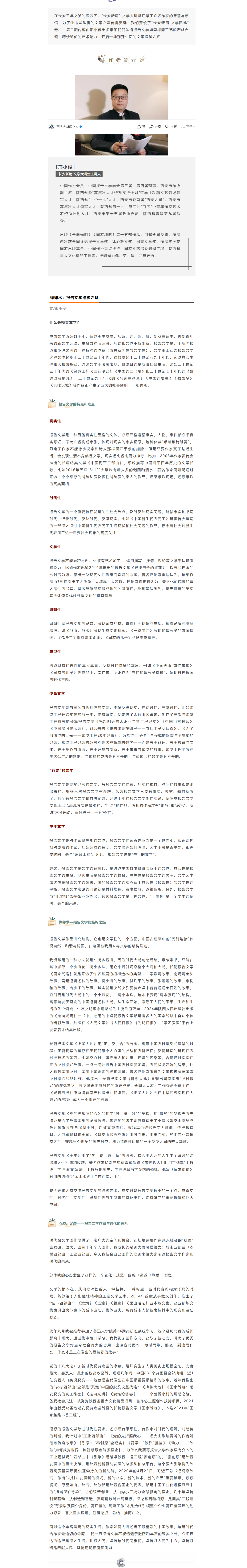 【媒体聚焦】我院教师邢小俊于西安文联公众号发表文章《榫卯术:报告文学结构之魅》