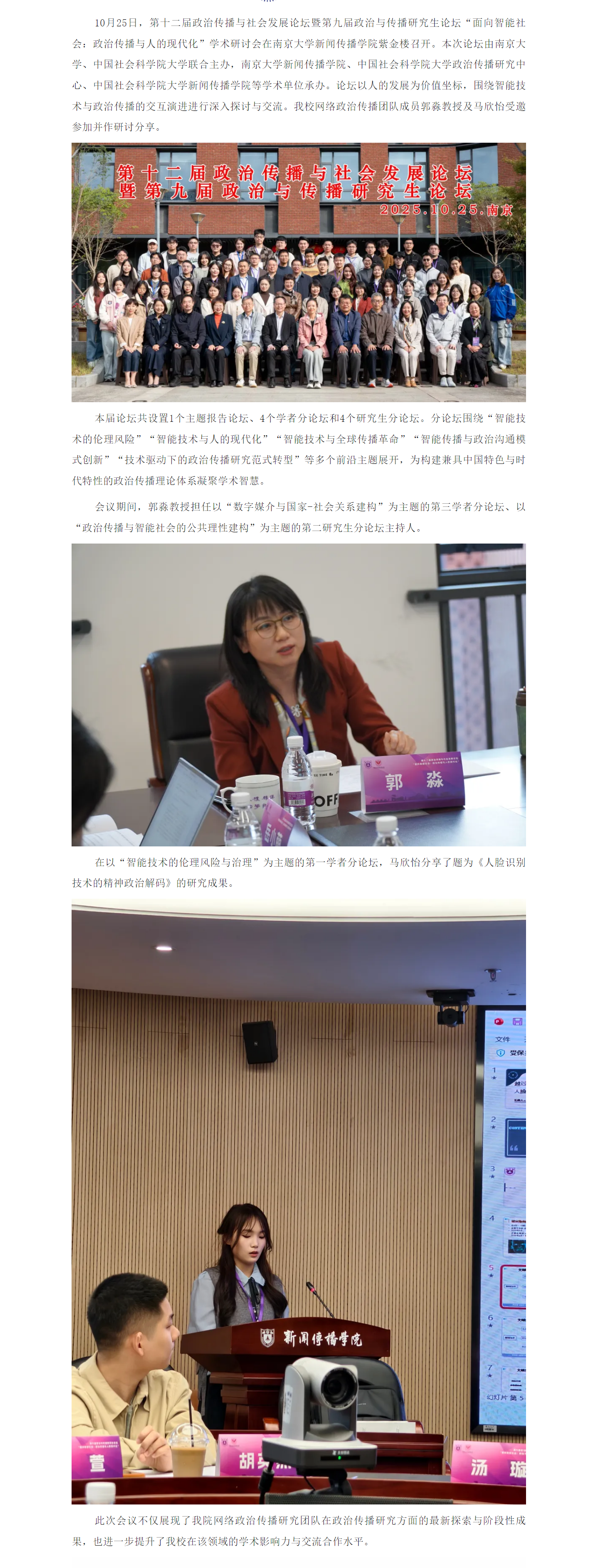 我院师生受邀参加第十二届政治传播与社会发展论坛并作发言