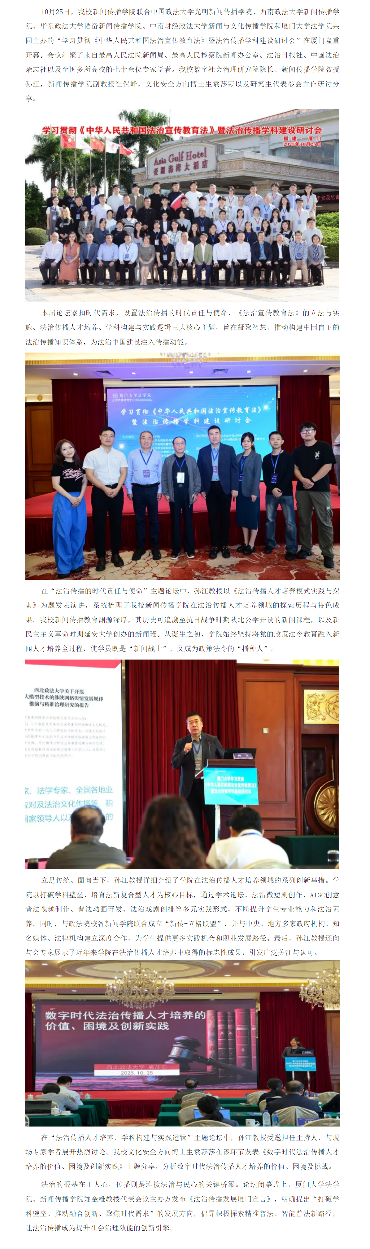 我校开元体育 联合主办的法治传播学科建设研讨会在厦门闭幕