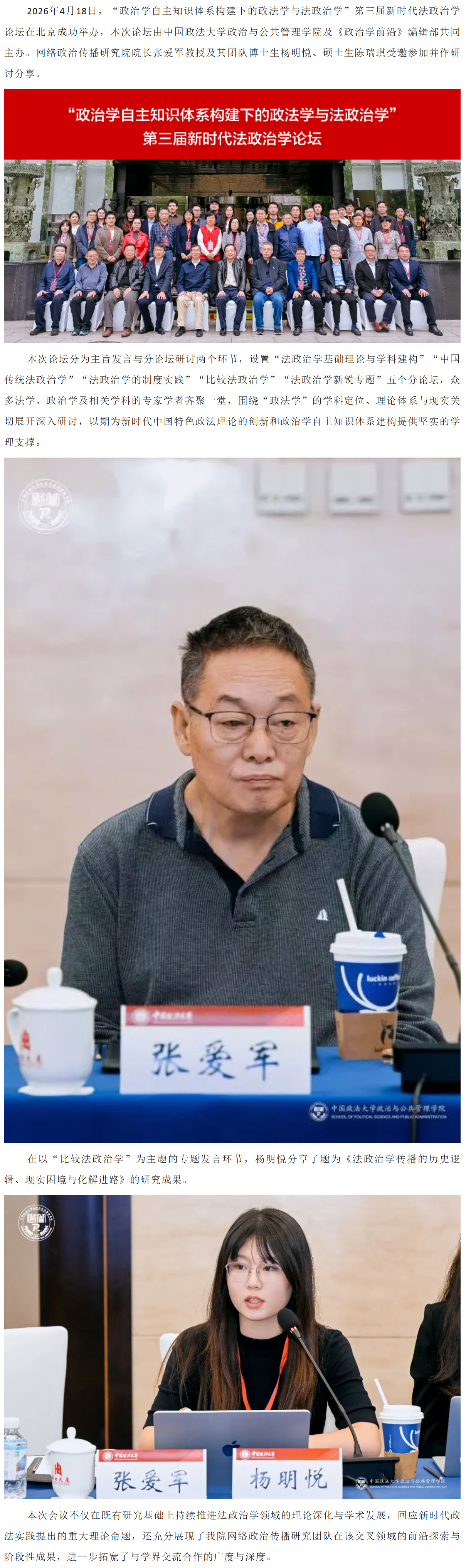 网络政治传播研究院院长张爱军教授及其团队学生参加“政治学自主知识体系构建下的政法学与法政治学”第三届新时代法政治学论坛